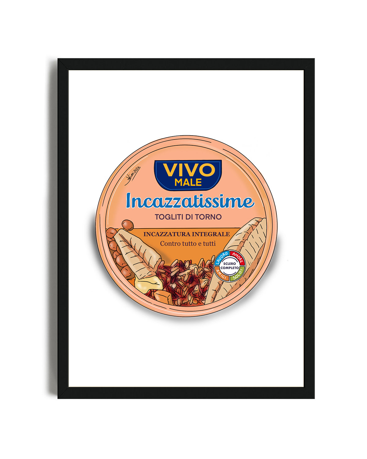 Poster 30 x 40 cm "Incazzatissime" con cornice nera in legno e protezione frontale in plexiglass.